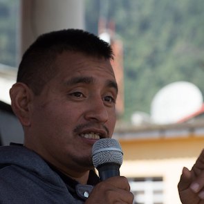Julio Gómez Lucas is a human rights defender, leader of the Maya Chuj community of San Mateo Ixtatán, and member of Resistencia Pacífica de la Microregión de Ixquisis (Peaceful Resistance of the Microregion of Ixquisis), a community movement defending human rights which was formed in response to grave rights violations committed in the name of economic development in Guatemala. The Peaceful Resistance of the Microregion of Ixquisis was the 2018 regional winner of the Front Line Defenders Award for Human Rights Defenders at Risk.